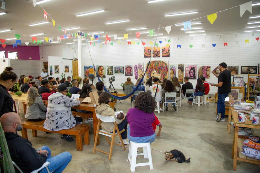 Durante esse encontro, foram compartilhadas curiosidades sobre o processo de escrita e sobre as ilustrações — cada uma desenvolvida com técnicas diferentes, transformando o livro em uma verdadeira ferramenta pedagógica e em uma grande inspiração para o processo criativo de crianças de todas as idades. O livro também se torna um importante apoio para educadores e cuidadores, já que cada ilustração traz uma nota de rodapé “fora da caixa”, explicando a técnica utilizada e sugerindo como criar arte com materiais simples, que podem ser encontrados em casa.
