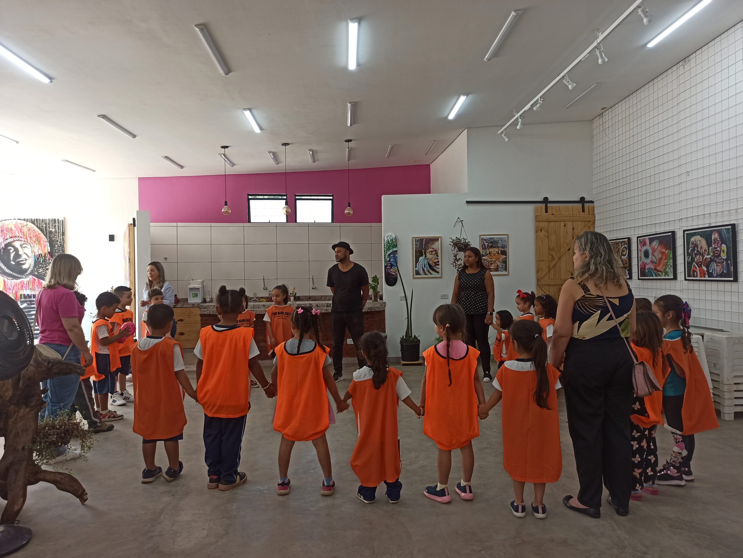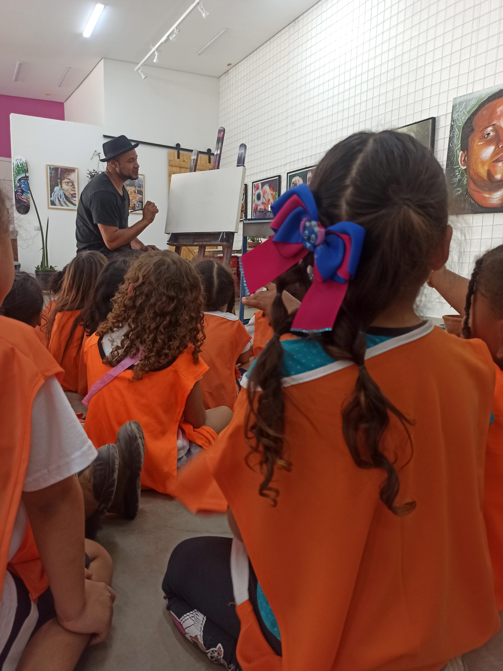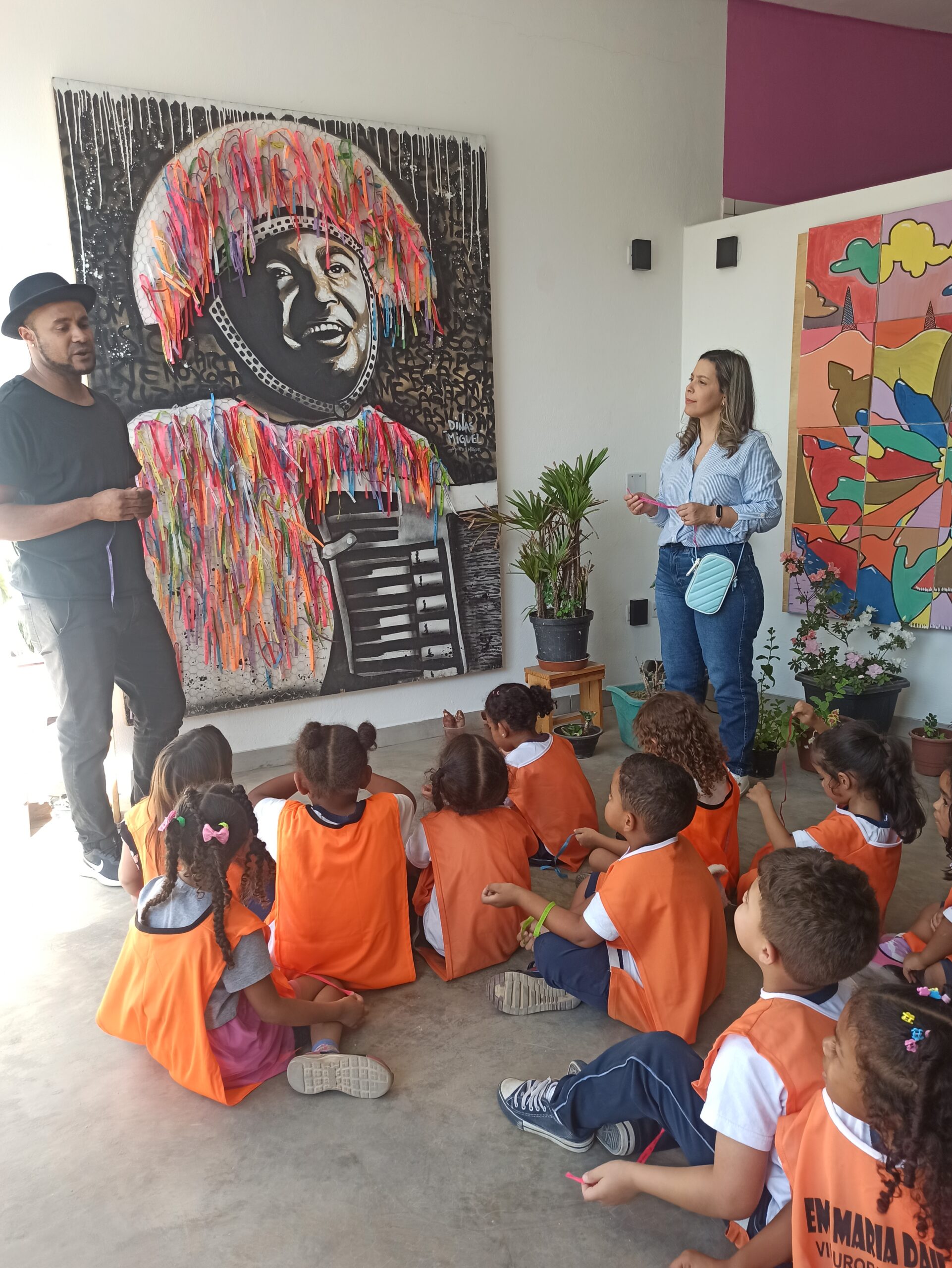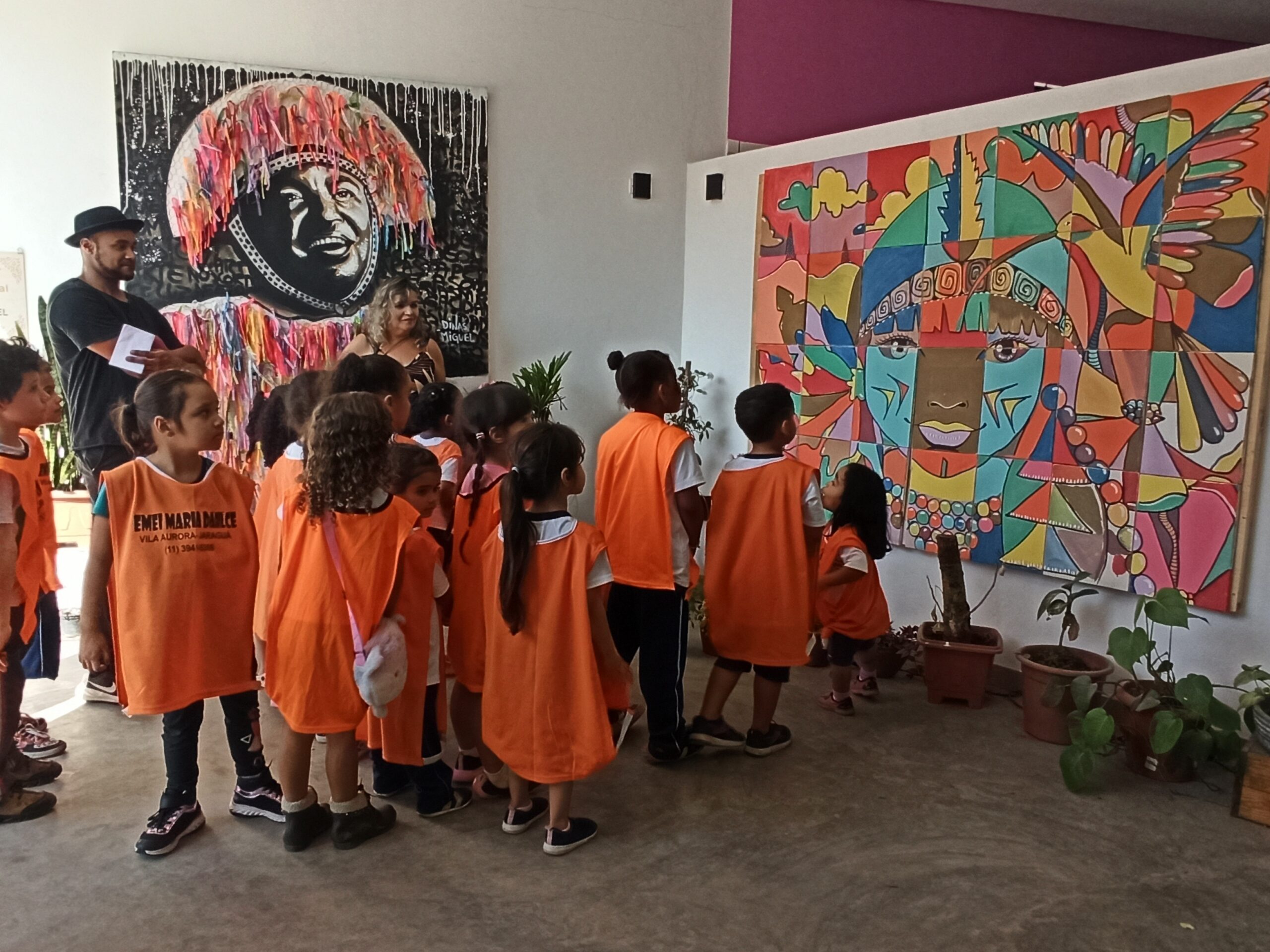 Durante os encontros, os estudantes conhecem a história do Atelier Dinas Miguel e do artista Dinas Miguel, exploram as obras expostas e participam de rodas de conversa que conectam arte, sociedade e vivências do território. Também são apresentados conteúdos que dialogam com literatura, como o livro O Menino que Pensa Fora da Caixa, que inspira reflexões sobre criatividade, autoestima e novos modos de pensar o mundo.