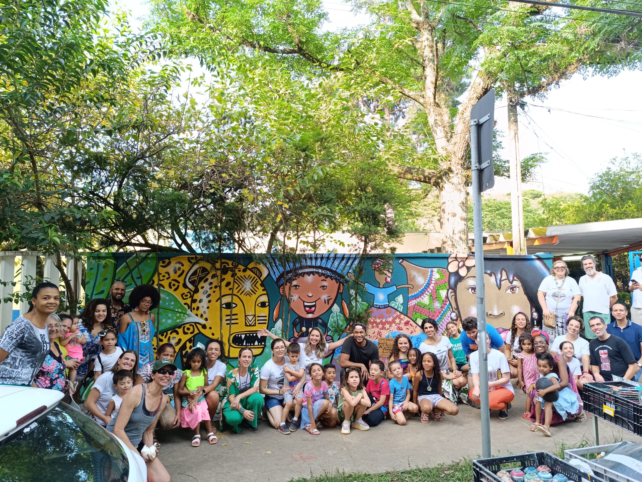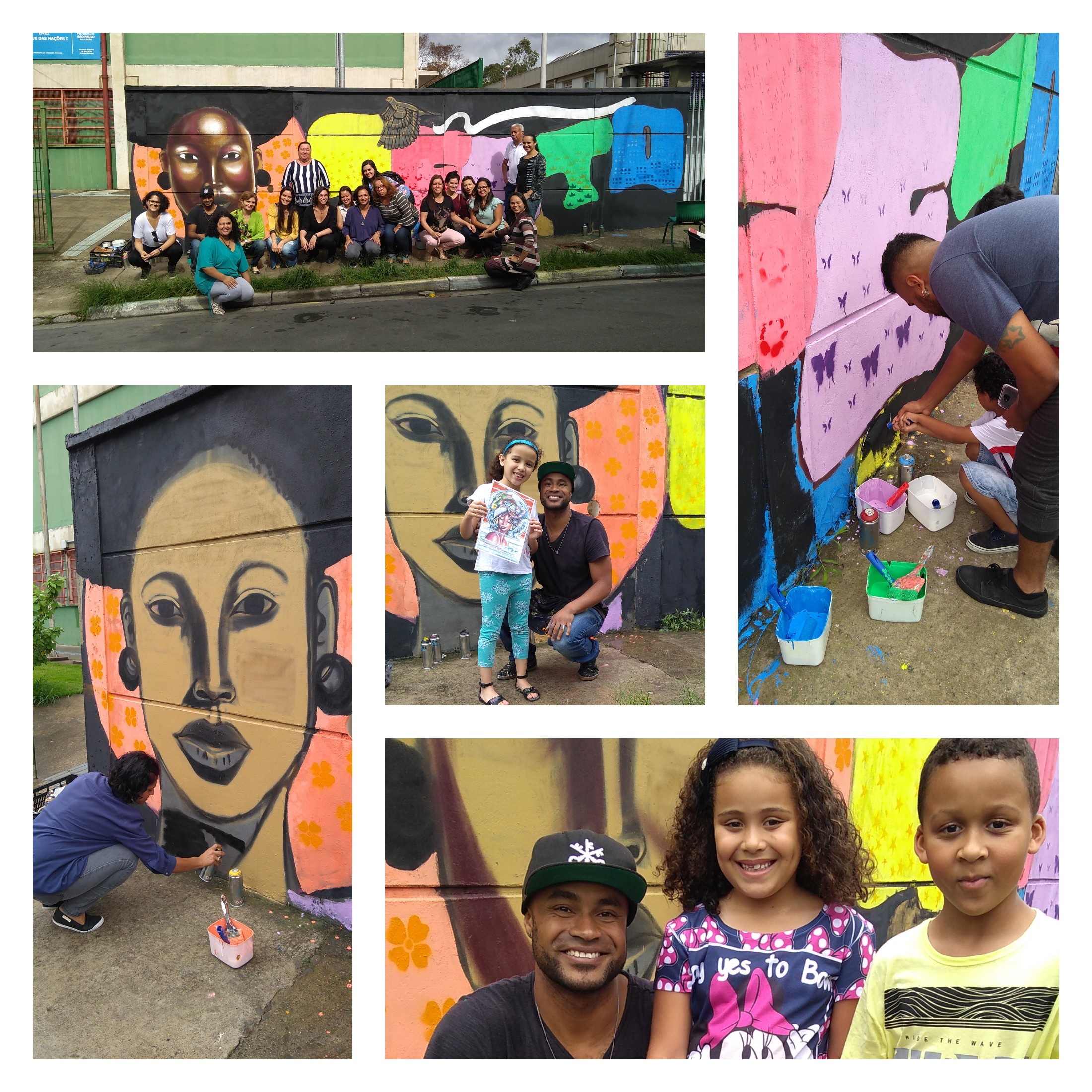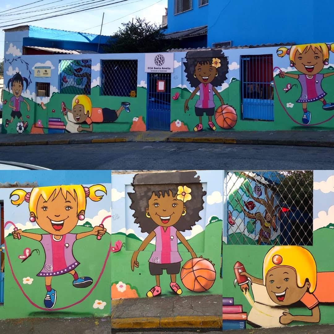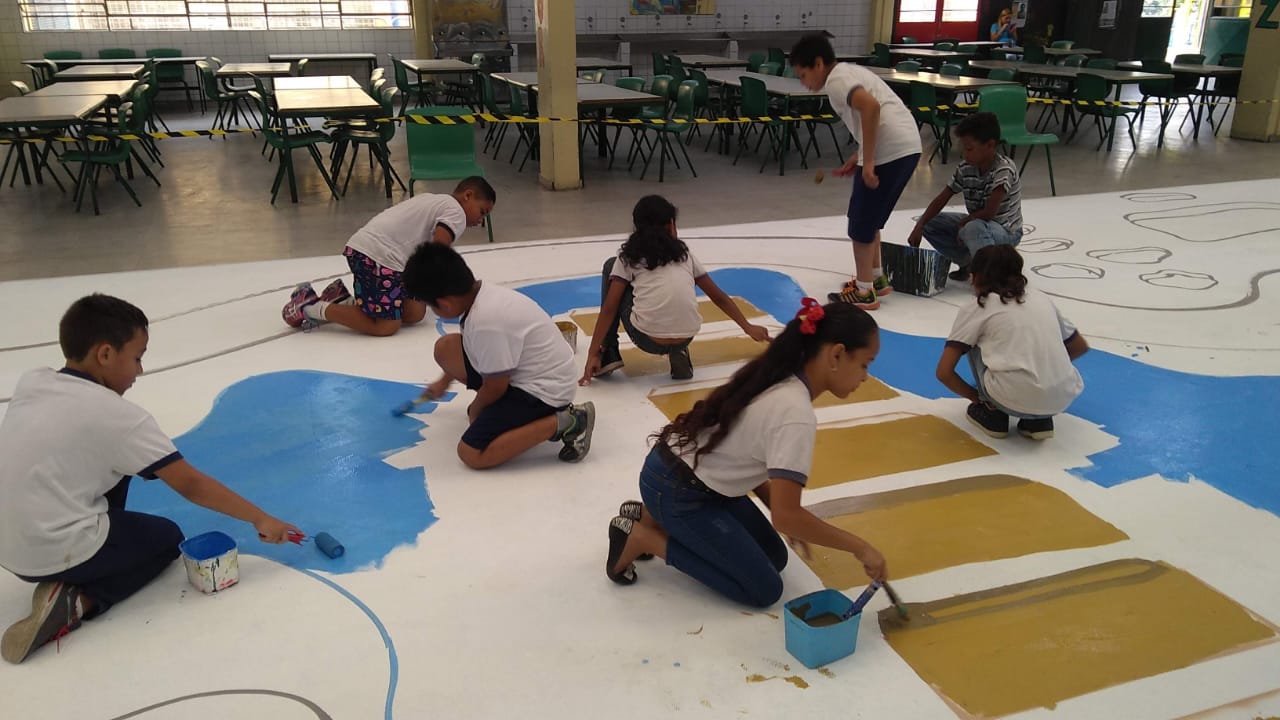 A proposta pode envolver a transformação de um espaço escolar — como áreas comuns, salas de aula, pátio, corredores ou fachada externa — criando um novo visual que represente os valores e a identidade trabalhados na escola, ou em um tecido ou telas que depois também pode compor os dias da comunidade escolar.