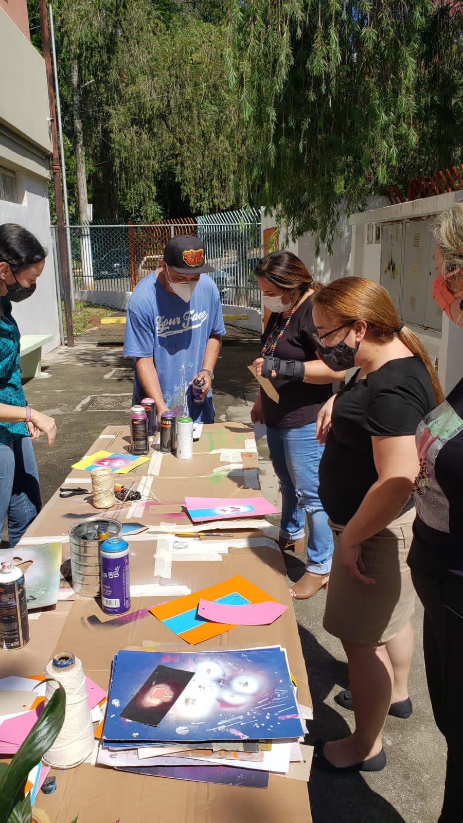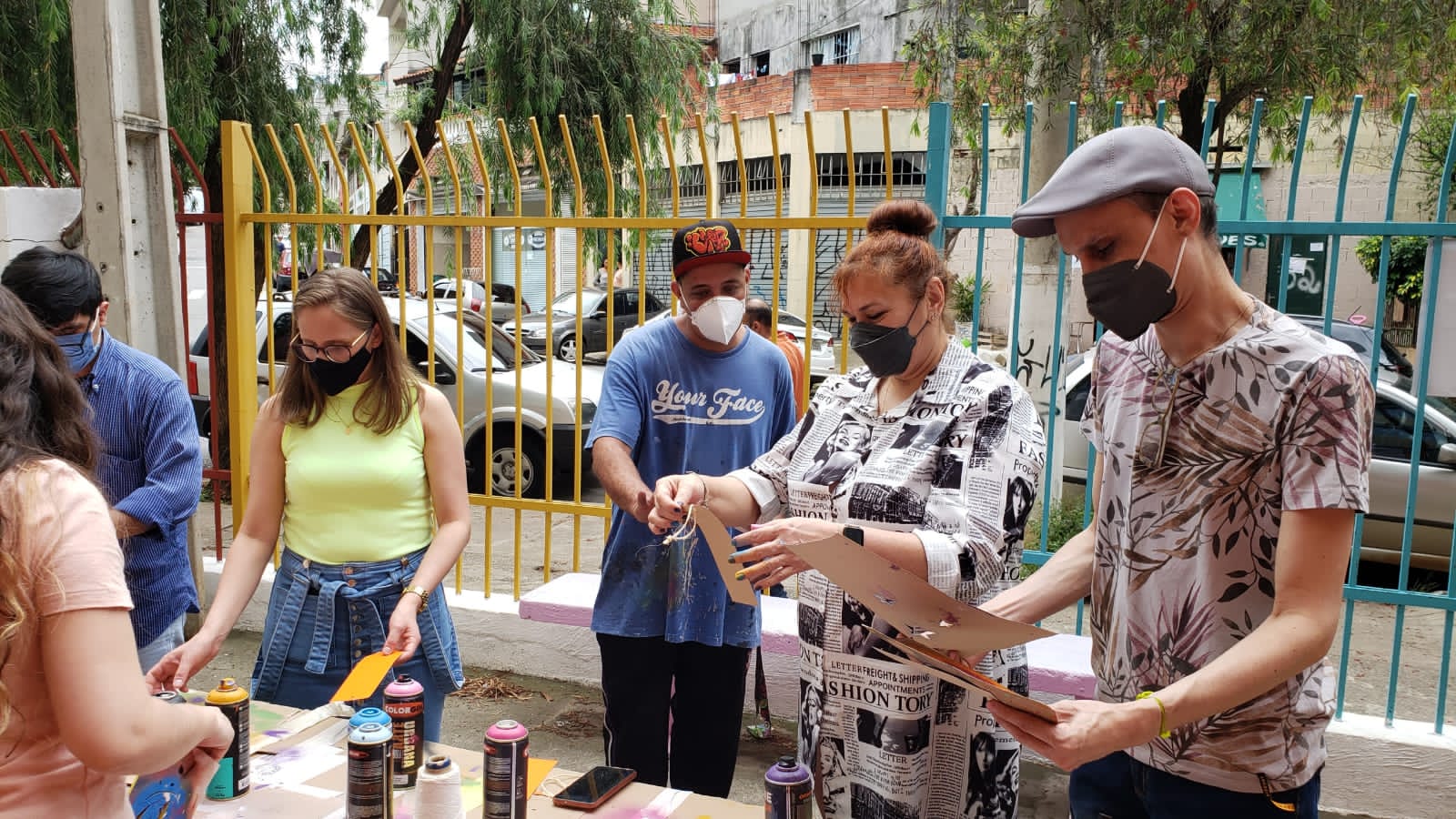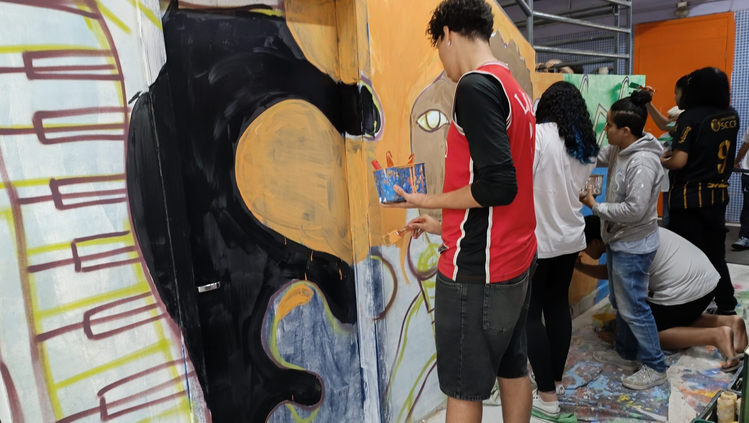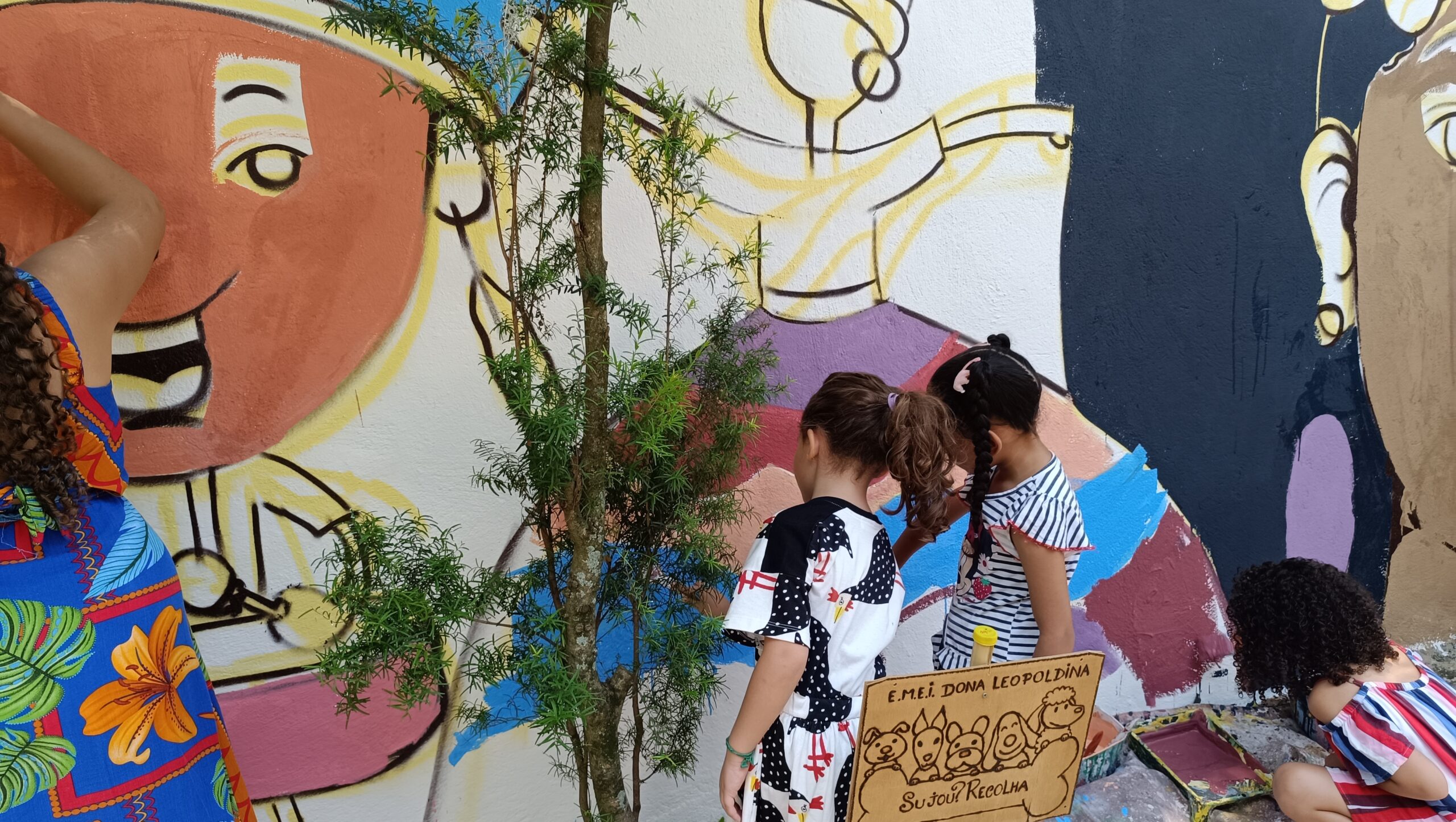 A proposta pode envolver a transformação de um espaço escolar — como áreas comuns, salas de aula, pátio, corredores ou fachada externa — criando um novo visual que represente os valores e a identidade trabalhados na escola, ou em um tecido ou telas que depois também pode compor os dias da comunidade escolar.
