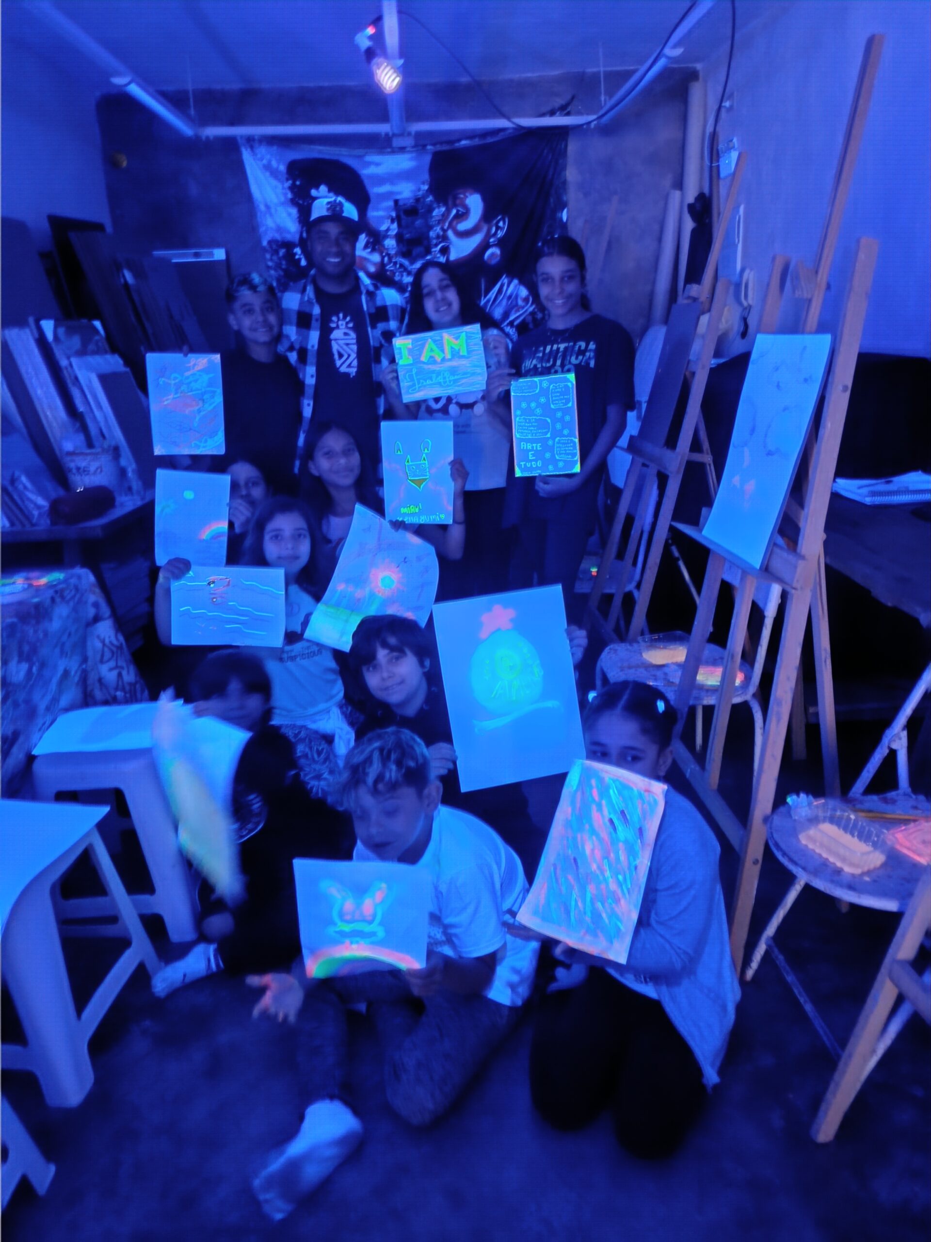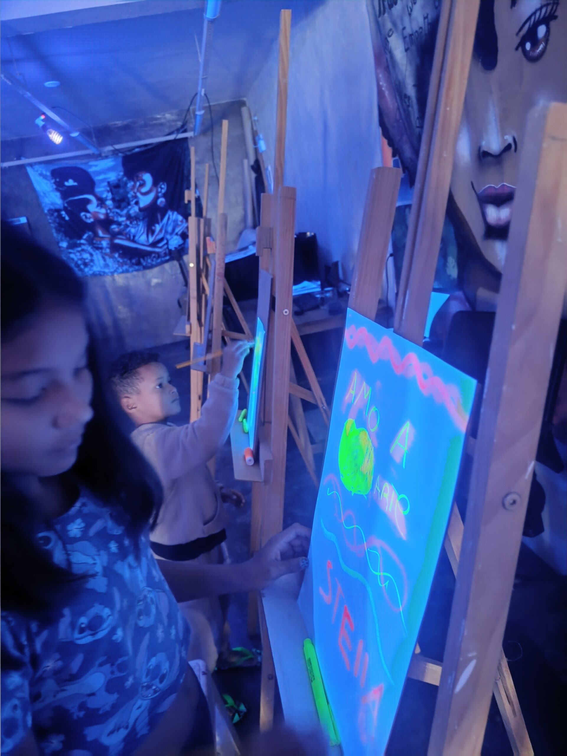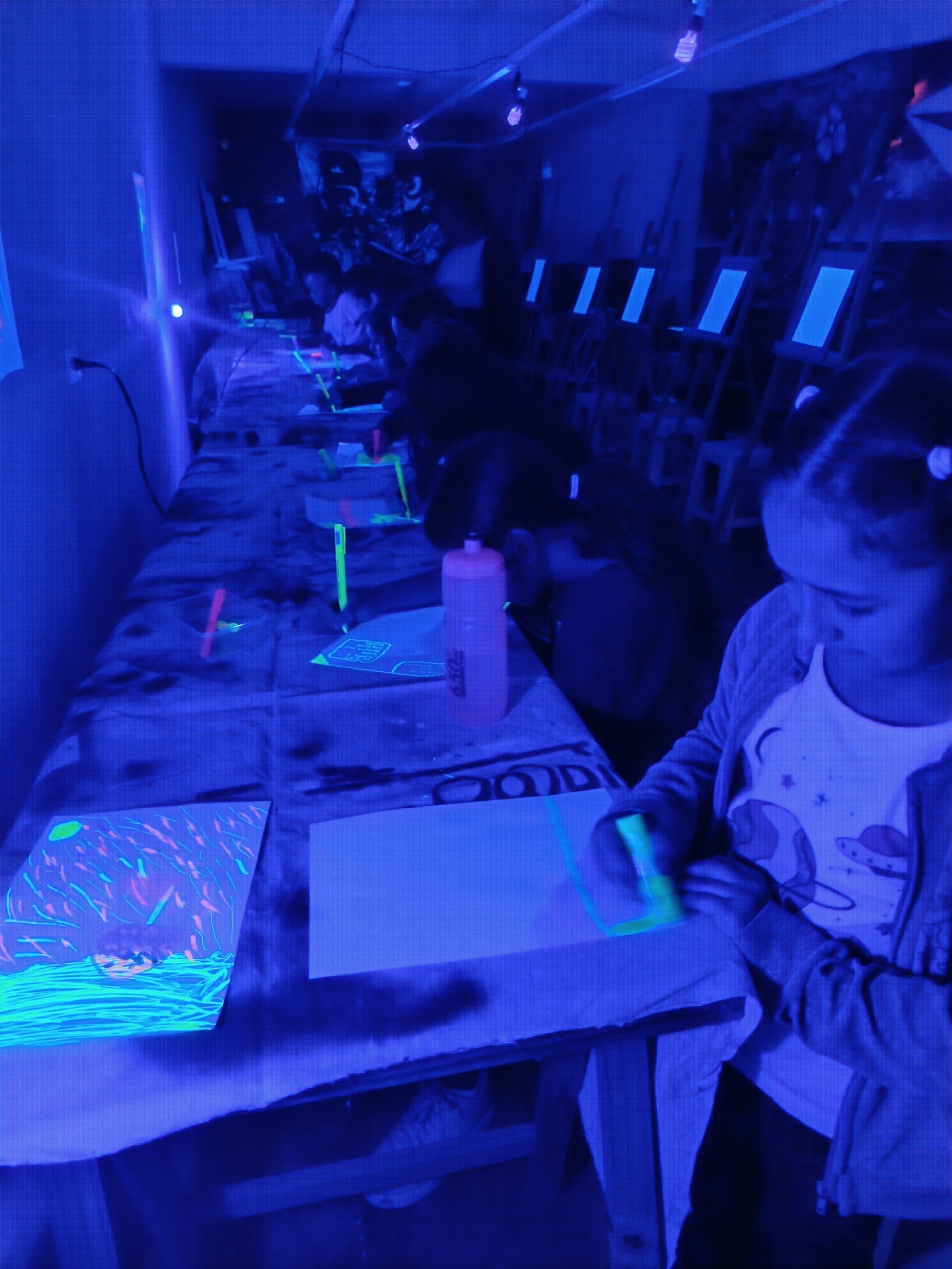 Uma experiência incrível, dinâmica e divertida, onde a arte se transforma em um momento de descoberta, criatividade e conexão. A Oficina de Pintura Neon convida os participantes a explorarem a pintura de forma lúdica e interativa, despertando a imaginação enquanto criam suas próprias obras.